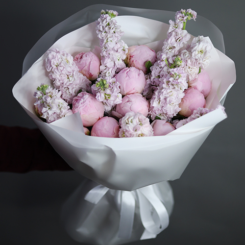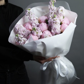 Букет "Покажи мне любовь" из пионов Сара Бернар и ароматных маттиол