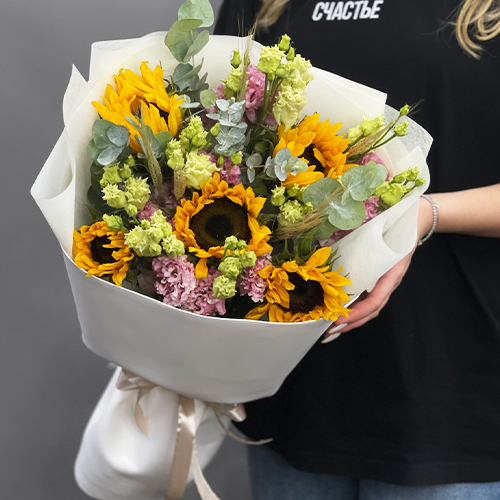 Заказанный букет вы можете забрать у нас в магазине по адресу: Москва: ул. Большая Семеновская 11с3 - с 7:00 до 24:00!