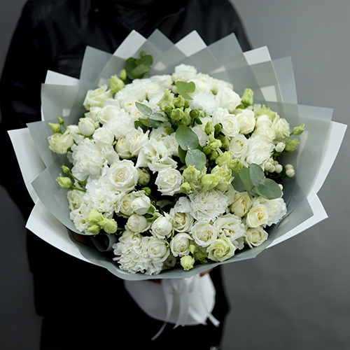 Букет "Маскарпоне" из роз, диантусов, эустом и гиперикума