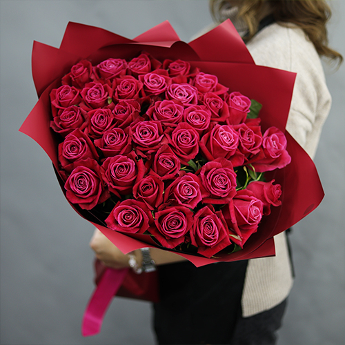 Букет из 35 малиновых роз Шангрила (50 см)