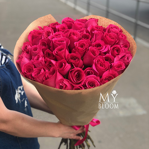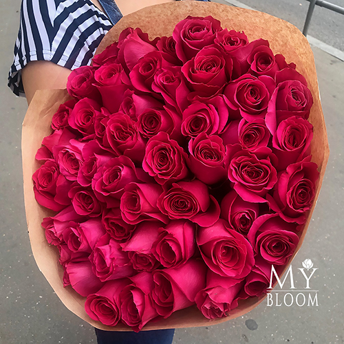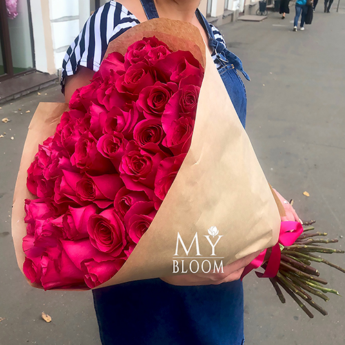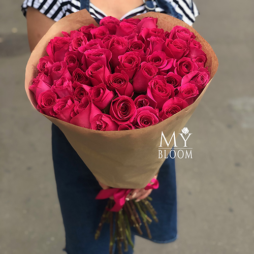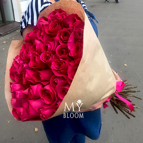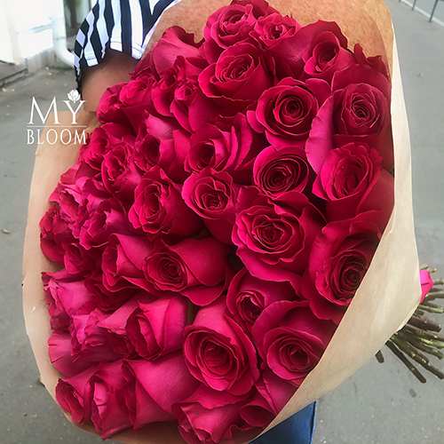 Букет 51 малиновая роза Эквадор Пинк Флоид (60 см)